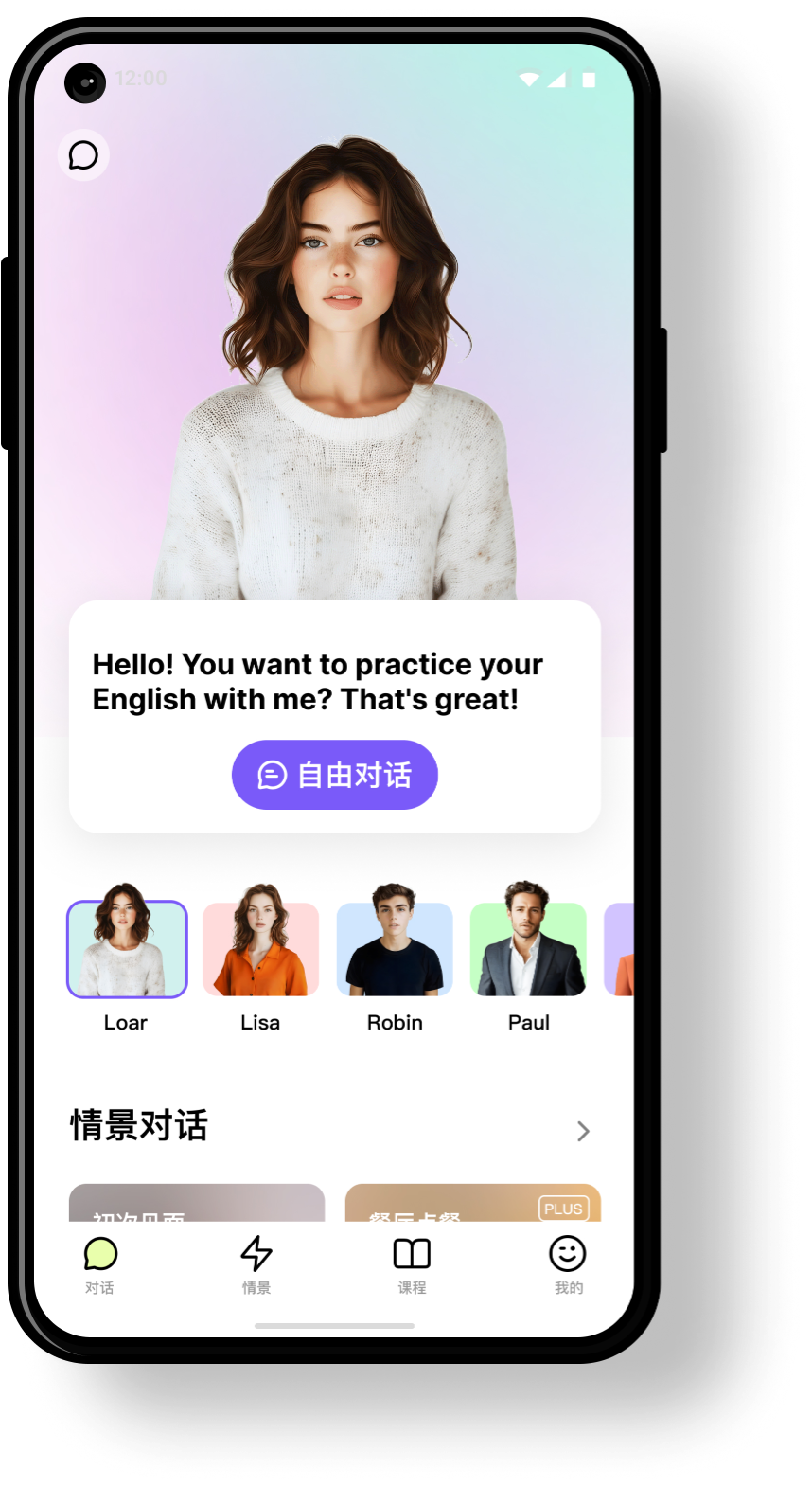 口语陪练是一款通过人工智能练习英语口语的应用,有多种角色选择,进行自由对话或情景化对话,对你语法和发音的纠正